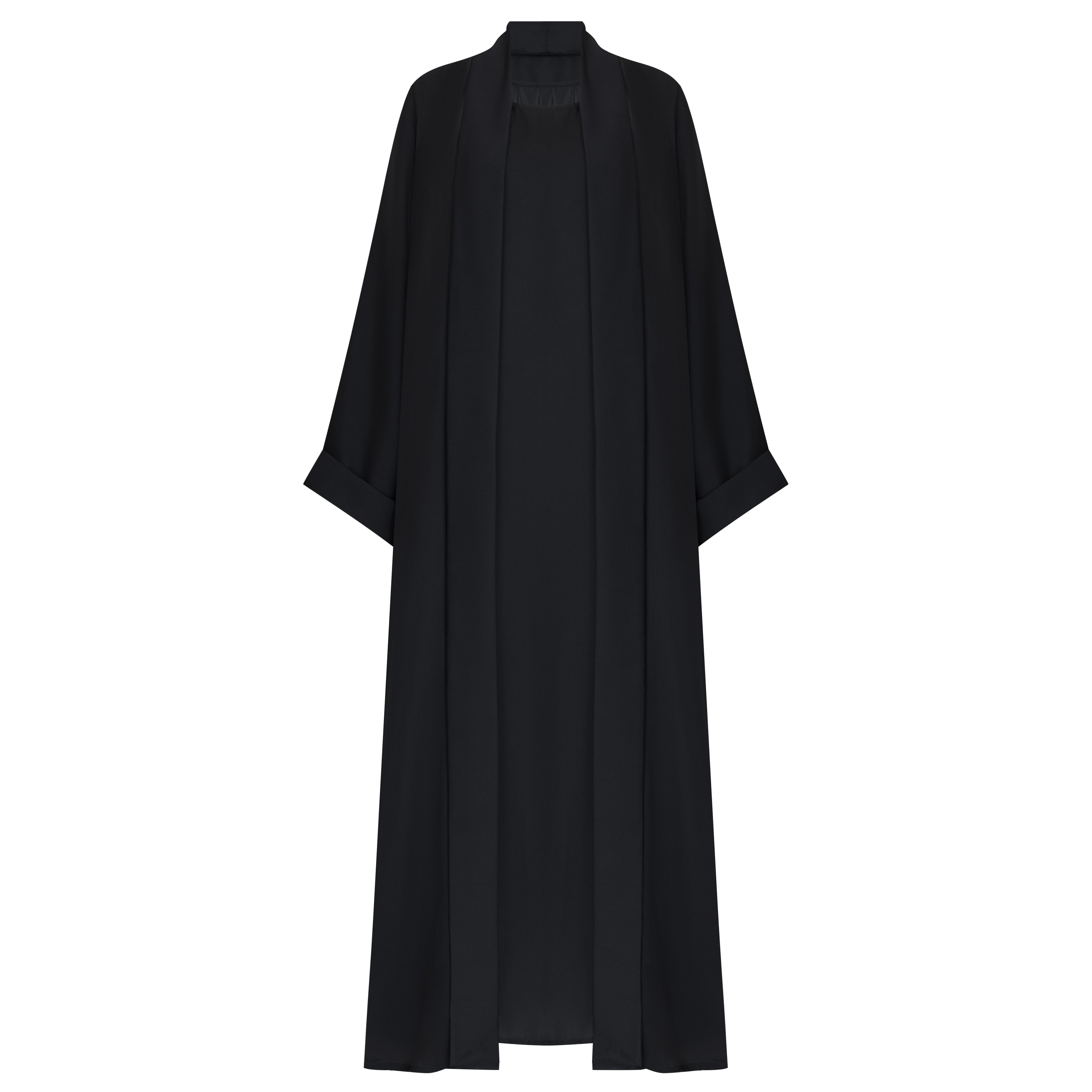 This Black Flow Abaya features an Inner-Dress , combining style and functionality. The lightweight and flowy design offers comfortable coverage, perfect for any occasion. This abaya is a staple for any modest wardrobe.