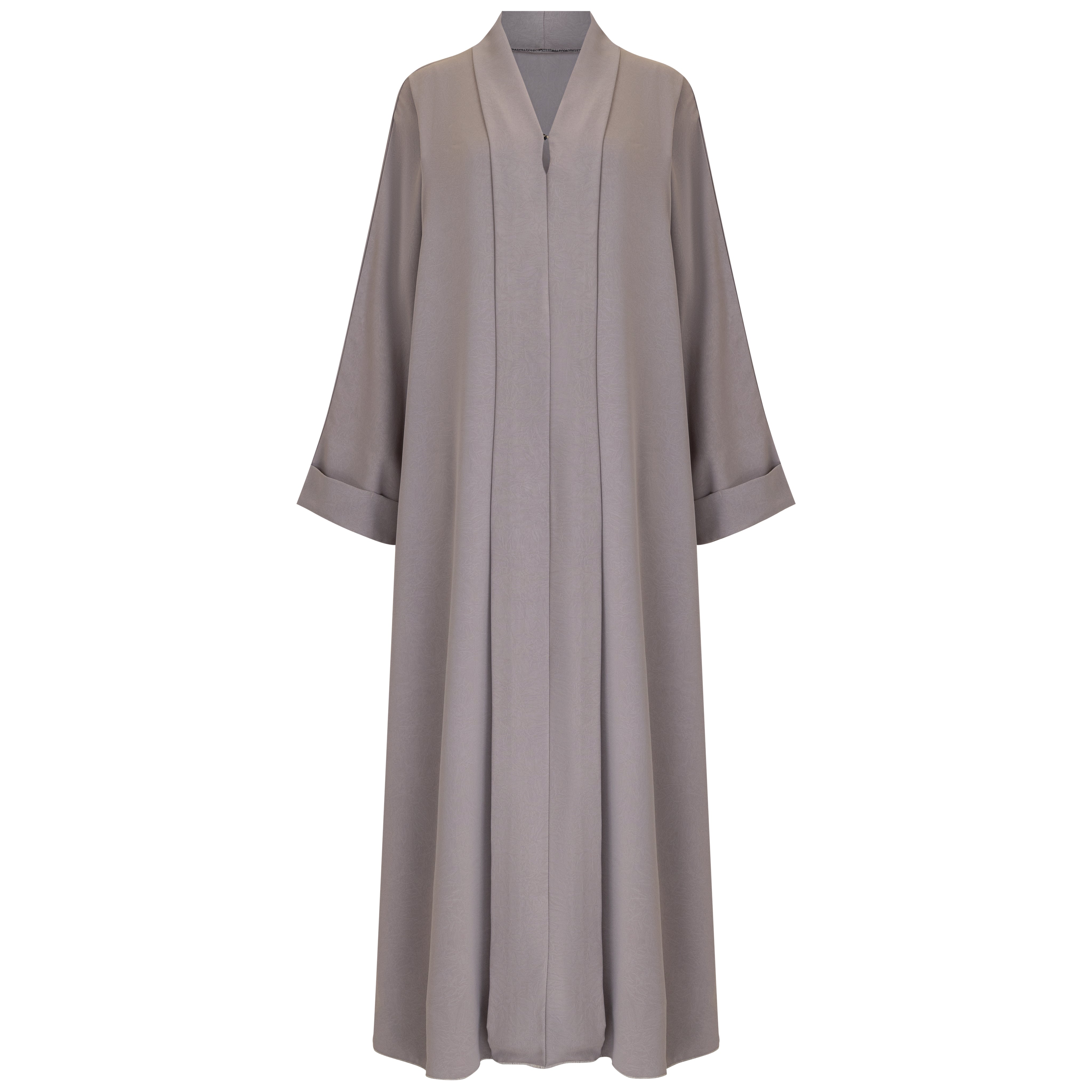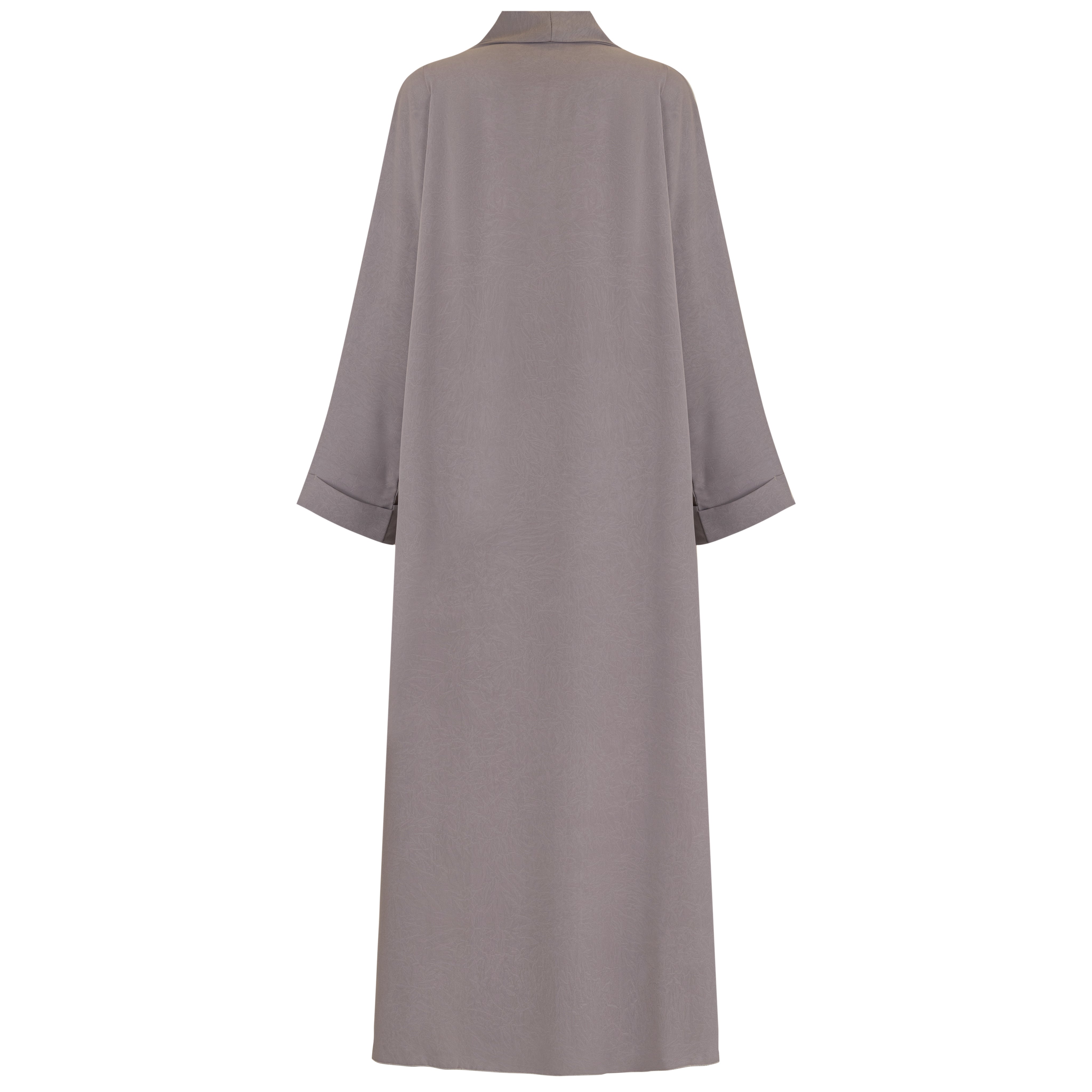 The Dusty Mauve Abaya, designed from premium lightweight crepe fabric for a sophisticated yet breathable fit. The fabric’s subtle texture and matte finish provide a refined look, making it perfect for both casual and formal wear.
